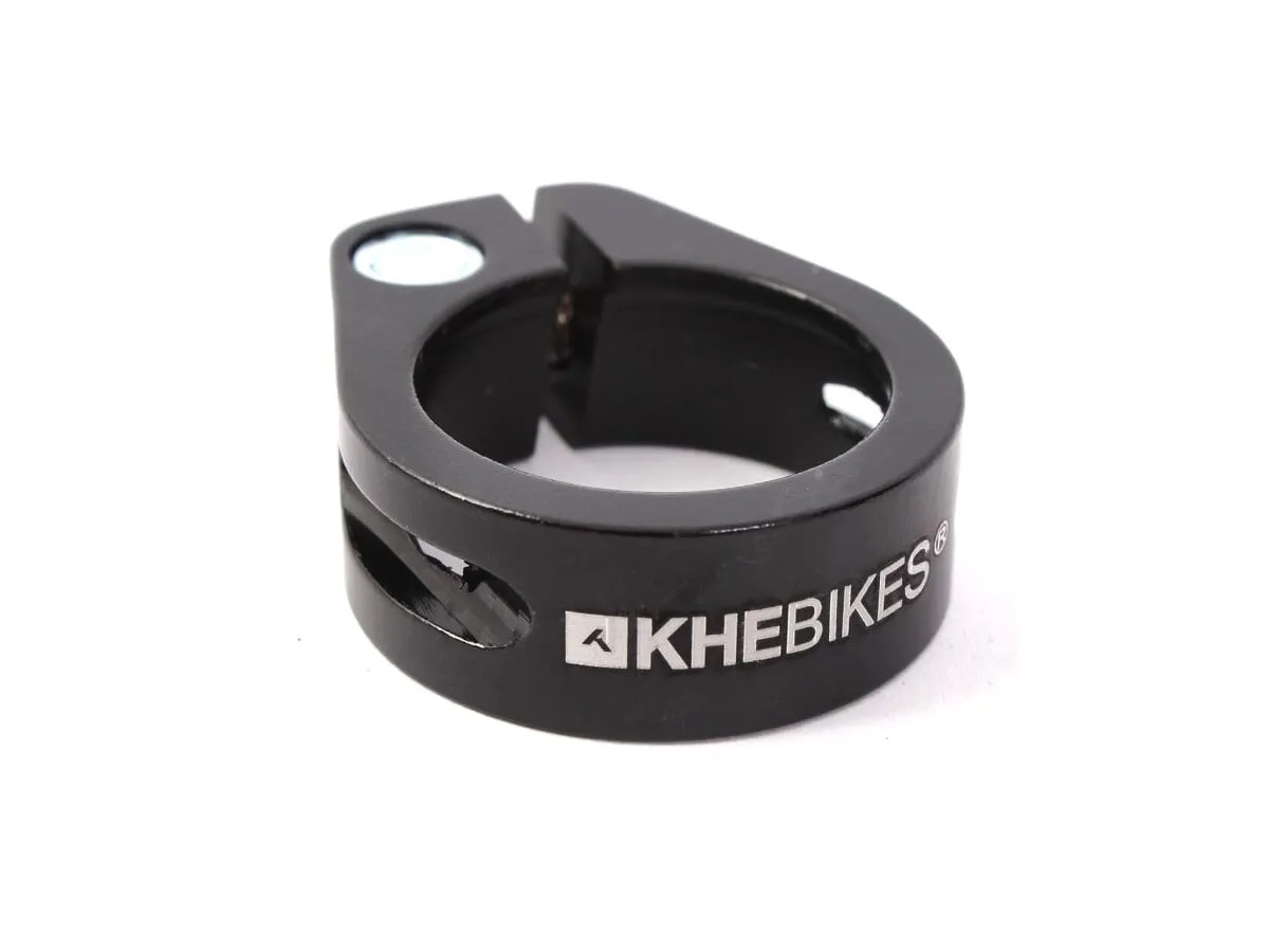 The KHE Bikes Seat Clamp is made of 7005 aluminium and is printed with a KHE Bikes logo.