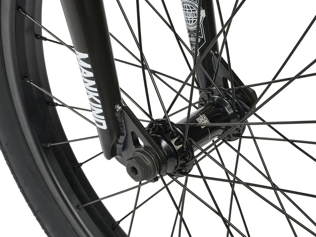 • Hub (front): Mankind "Vision", female axle with 10mm (3/8") CrMo bolts, sealed bearing (SB), 36H
