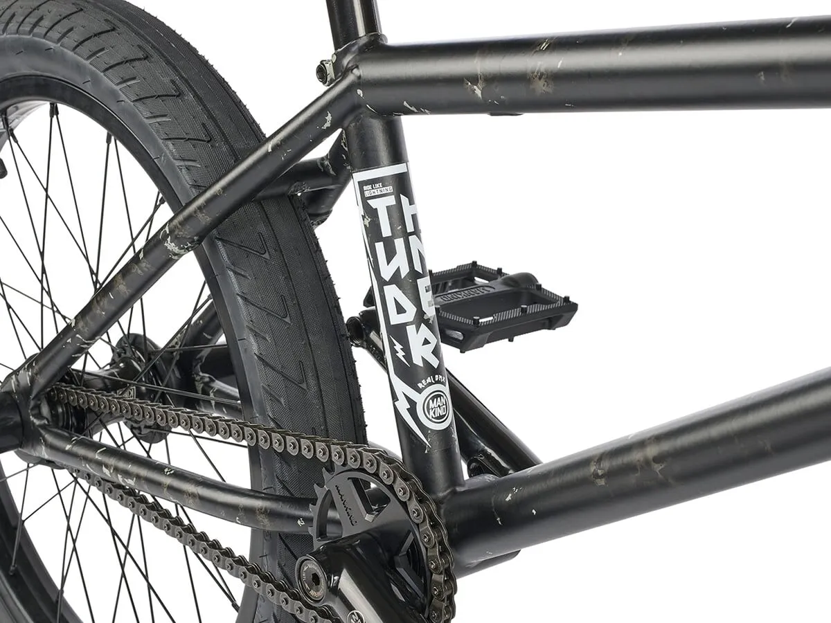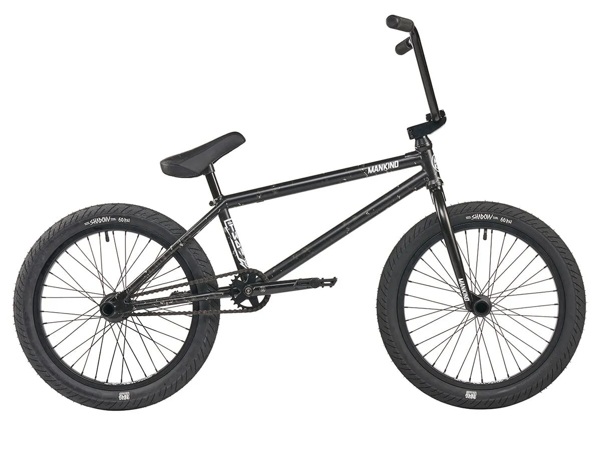 The Mankind Bike Co. "Thunder 20" BMX Bike - Freecoaster | Semi Matte Smoke Grey is the top of the line street machine with Mankind "Vision" freecoaster and front hub, Mankind "Vision" double wall rims and Mankind "Sunchaser" stem. The Shadow Strada Nuova LP 2.3" Tires and the Shadow "Interlock V2" halflink chain are the icing on the cake! The perfect frame geo with 21.0" top tube, 11.75" BB height, 9.0" stand over and 13.5" CS Length, comes along with a 8.9" rise bar and tapered forks with 25mm offset. Ride the Lightning!