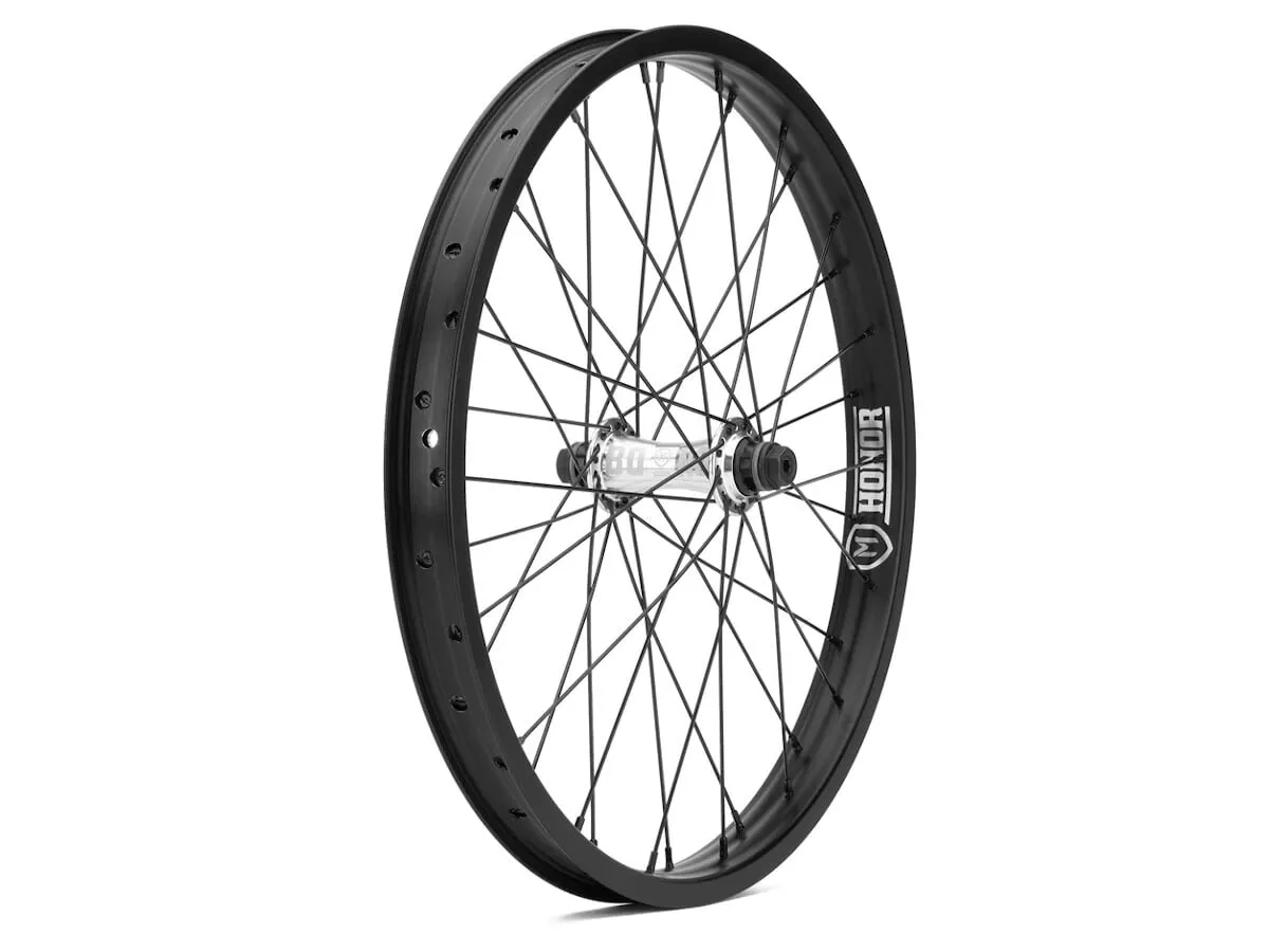 The Mission BMX "Bond X Honor" Front Wheel is composed of the Mission BMX "Honor" Rim and the Mission BMX "Bond" Front Hub. Doublewall and 36 spokes make the Mission BMX "Bond X Honor" Front Wheel light and strong.