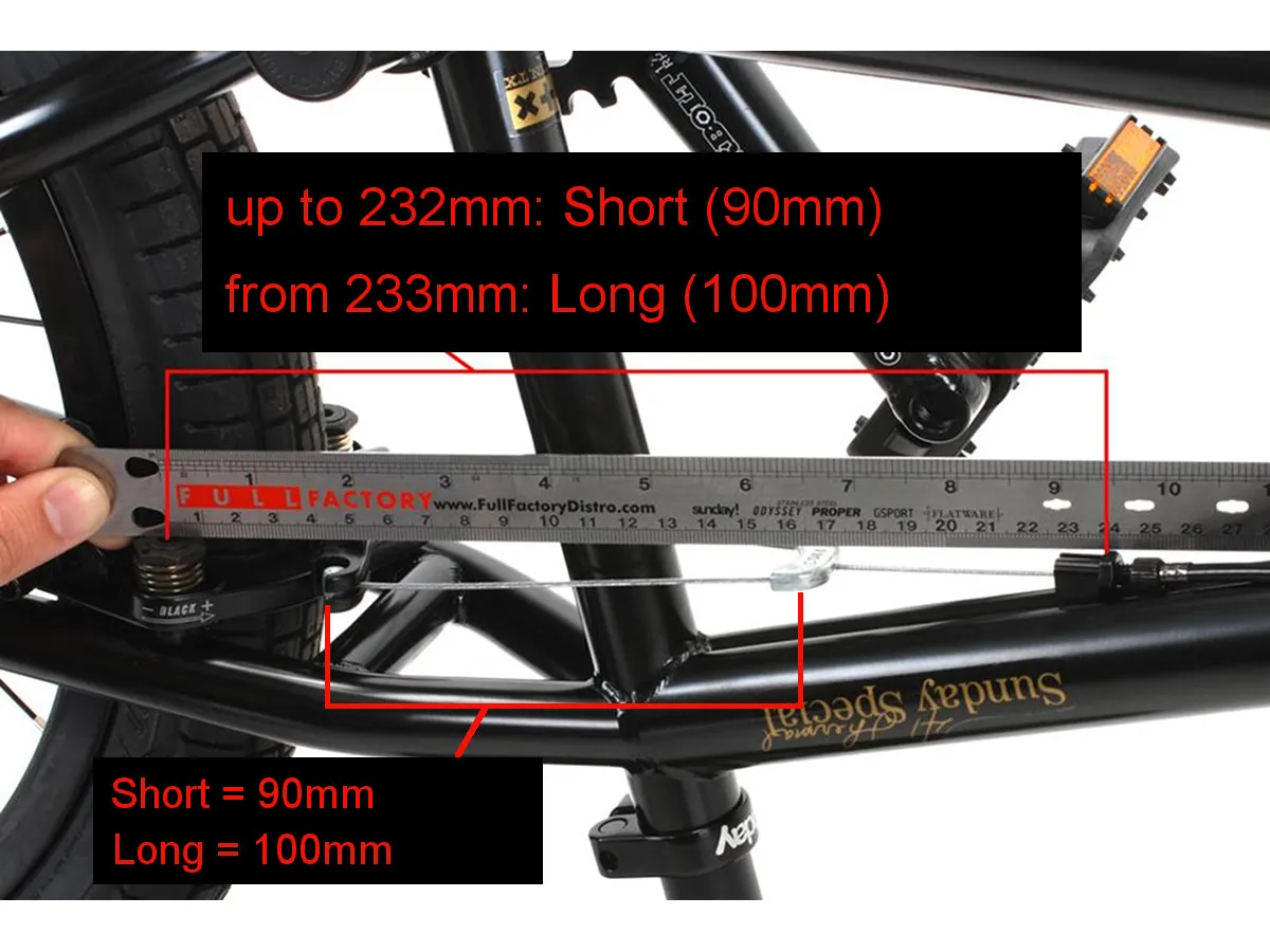 - A U-brake with open ended arms (Odyssey, Fly Bikes, Dia-Tech, Bicycle Union, Proper, Superstar, etc.). - Note: If there is no slot in the cable guide, a screwable brake lever drum (Knarp) is included in the scope of delivery. However, since experience in handling Knarps is required for this solution offered by the manufacturer, this solution is not recommended by us from experience.