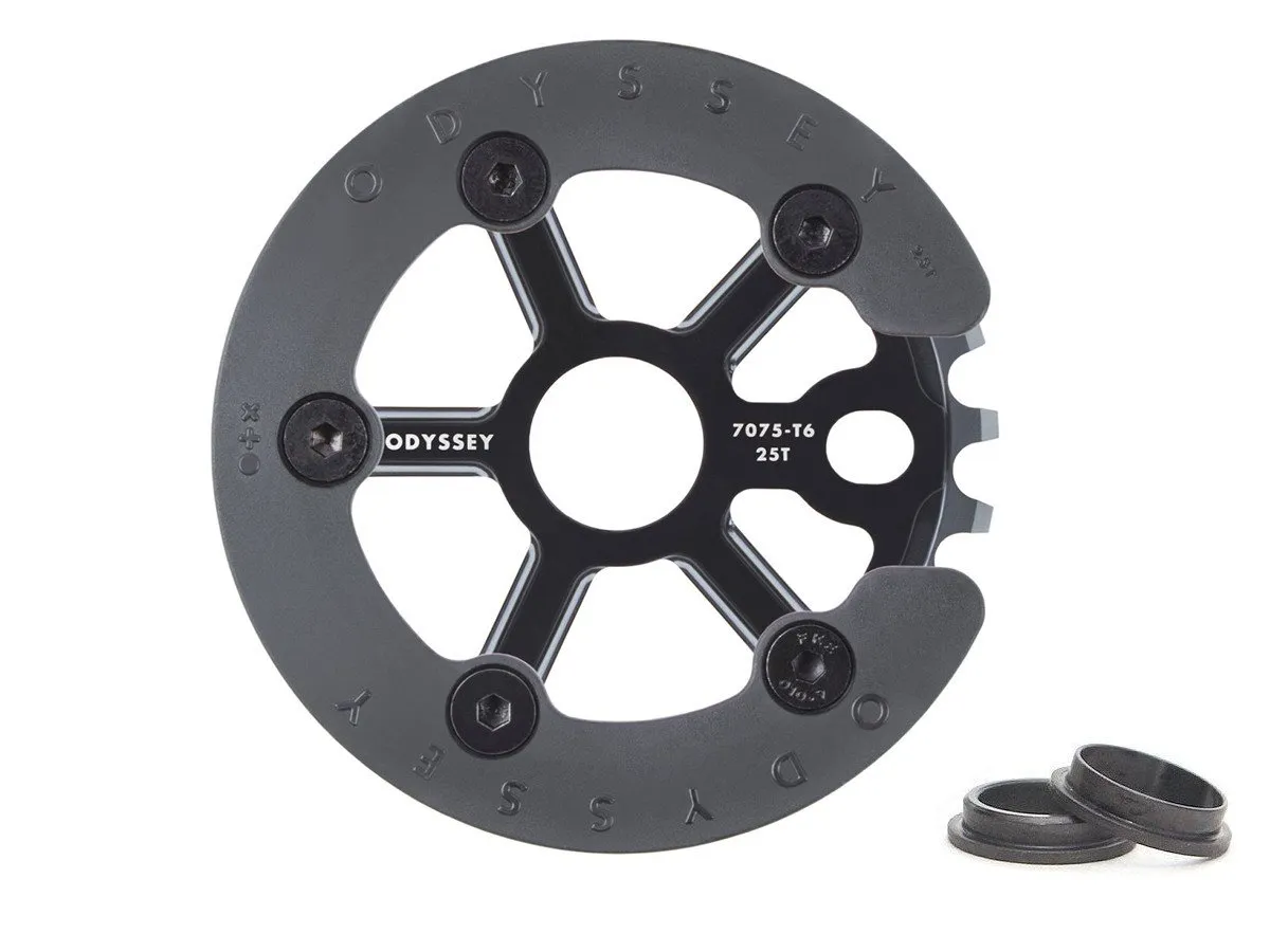 The Odyssey BMX "Utility Pro Guard" Sprocket is Odyssey's new guard sprocket. The plastic guard is replaceable and removable, revealing a classic and clean sprocket underneath. Run it with or without the guard. The choice is yours.
