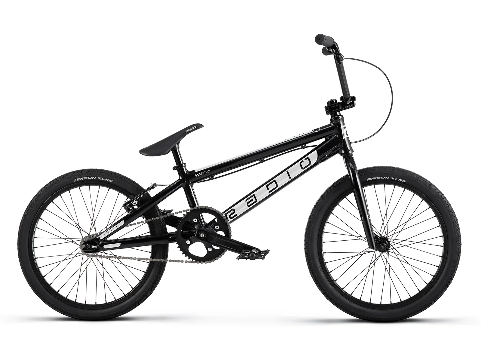 The Cobalt line combines proven geometry and dialed components giving you the best start out of the gate during your first days racing. The Radio Bikes "Cobalt Pro" 2026 BMX Race Bike - Black is Radio's pint-sized machine, the scaled down frame and lighter build kit make this thing unrivaled out there on the track. The Radio Bikes "Cobalt Pro" 2026 BMX Race Bike - Black has 20 inch wheels and a top tube length of 20.75" and is recommended for riders with a height up to 1.75m. The Radio Bikes "Cobalt Pro" 2026 BMX Race Bike - Black comes with high quality BMX parts like Radio "BX-32" rim or brakeset of ProMax. The Arisun "XLR8" BMX Race tires provide an optimum weight.