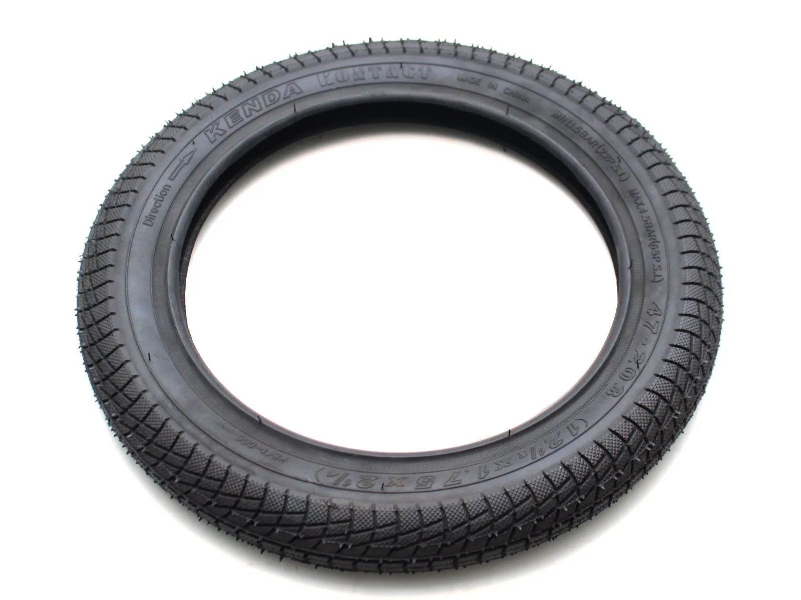 The Salt "Kenda Kontact 12" BMX Tire - 12 Inch fits to littel 12" BMX wheels or balance bikes like the wethepeople "Prime 12" BMX kids bike - 12 inch. The Salt "Kenda Kontact 12" BMX Tire - 12 Inch should inflate between 2.9 - 4.5 bar.
