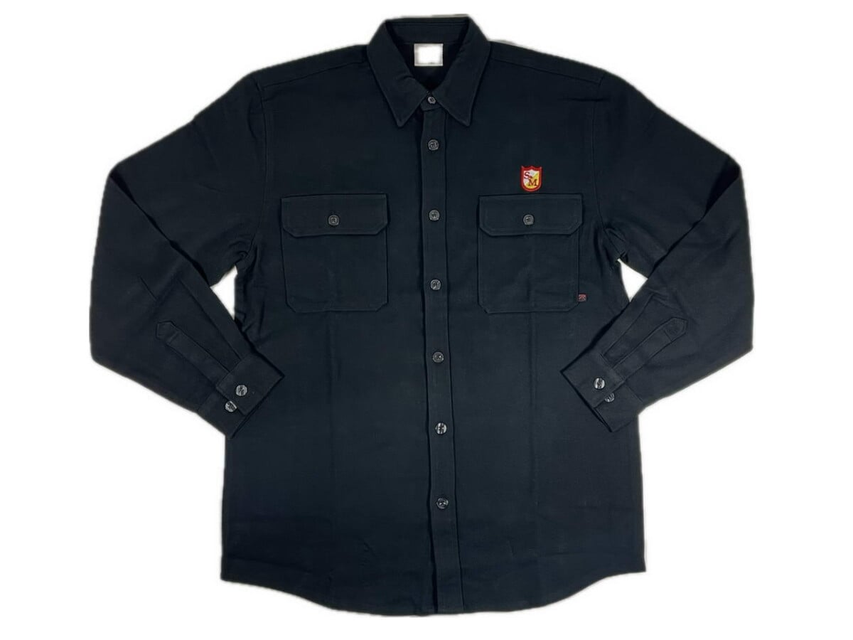 This S&M Bikes "Shield Flanell Heavy" Jacket - Black is made from 100% heavy cotton flannel and is designed for warmth and comfort, making it ideal for cooler days. The S&M Bikes "Shield Flanell Heavy" Jacket - Black features a classic button-up style with six buttons. Two chest pockets with button flaps provide plenty of room for personal items.