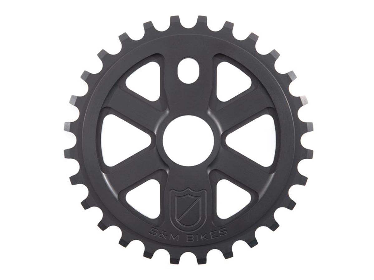 The S&M Bikes "X-Man" Sprocket is Made in USA. Not surprising that it is made of solid 7075 T6 aluminium. The shape of the S&M Bikes "X-Man" Sprocket is achieved by elaborate 3D CNC machining .