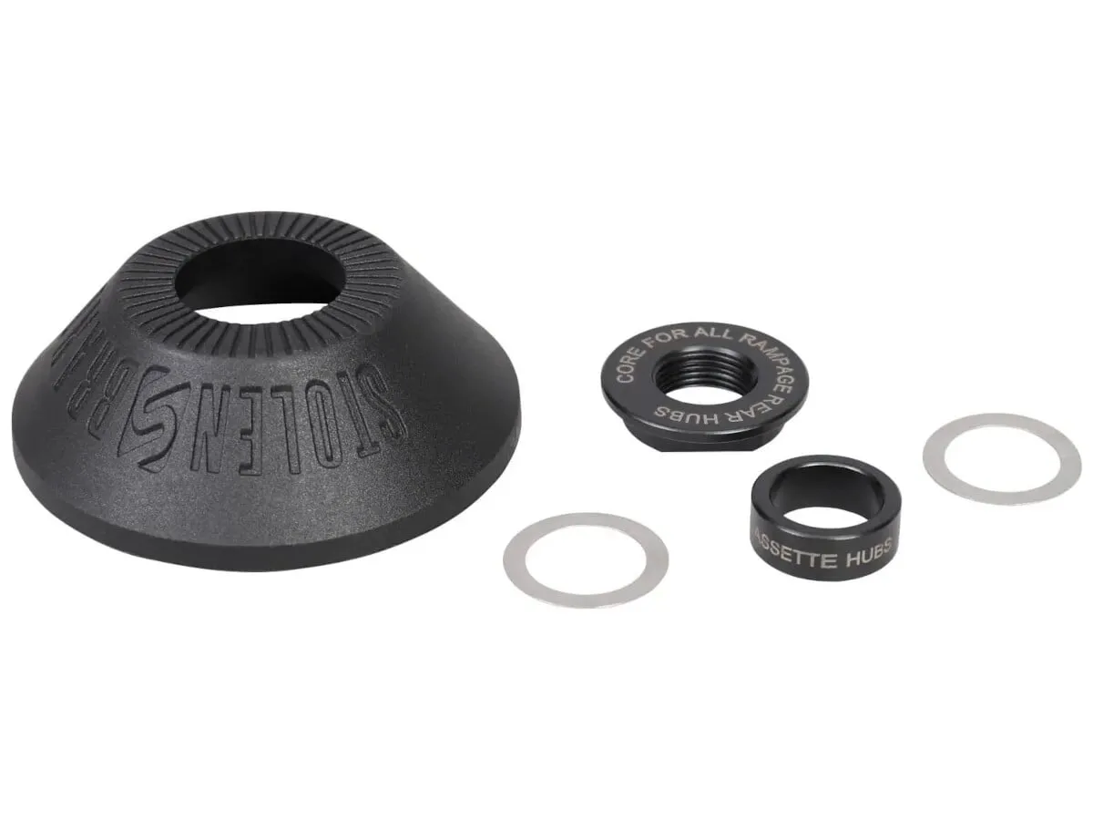 This Stolen BMX "Rampage Freecoaster & Cassette" Rear Hubguard - Non Driver SIde is compatible to the Stolen BMX "Rampage" Freecoaster & Cassette Hubs and replaces the screwed cone nut on the Non Driver Side.