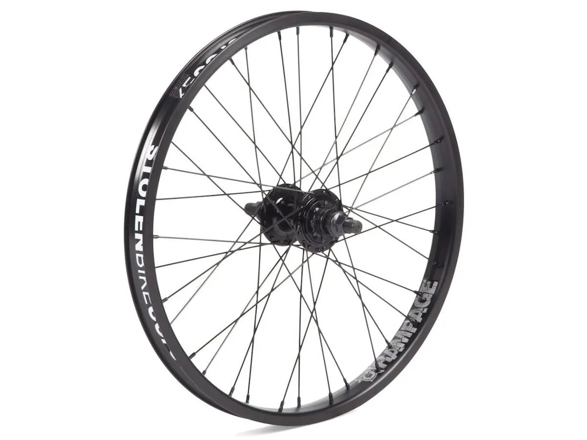 The Stolen BMX "Rampage" Freecoaster Rear Wheel is a combination of the Stolen BMX Freecoaster and the Stolen BMX "Rampage" rim. The Stolen BMX "Rampage" Freecoaster Rear Wheel is a solid freecoaster rear wheel made for freecoaster beginners and also advanced bmx riders.