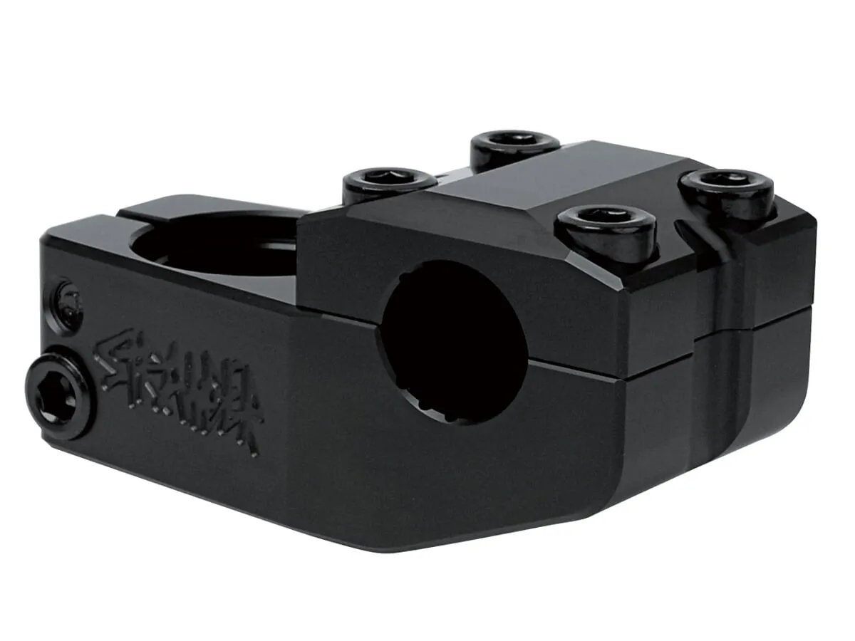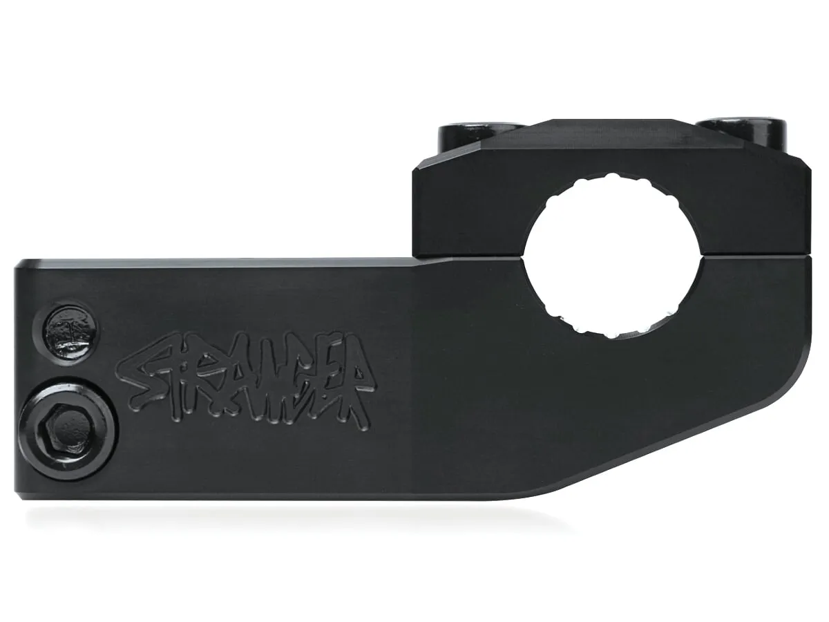 The Stranger "Rattlesnake" Topload Stem is made of high quality CNC machined 6061 aluminum. The use of massive allen bolts and Toothed clamping area provide on this Stranger "Rattlesnake" Topload Stem best clamping properties and high stability. The slightly wider overall design also provides a secure fit for high and wide handlebars. This topload stem allows you due to its construction riding a particularly high handlebar setup.