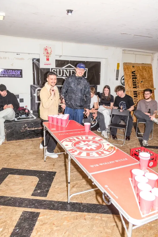 After the action at Stuttpark, the day continued with a Meet & Greet back at our shop. It was a mega relaxed atmosphere and the perfect chance to hang out and talk shop. A huge shoutout goes to Wulle for hooking us up with Beer Pong tables – you can probably imagine that things got pretty wild after that!