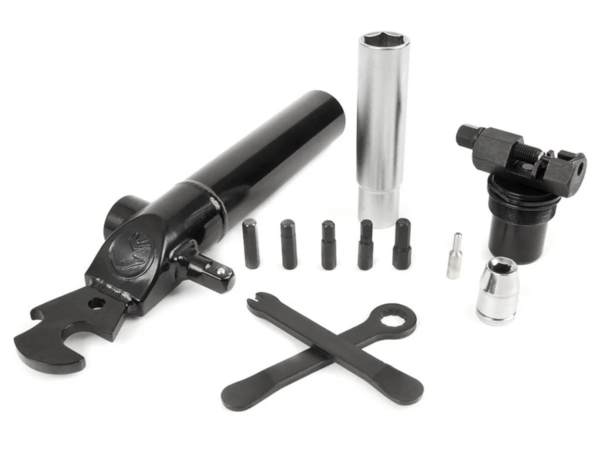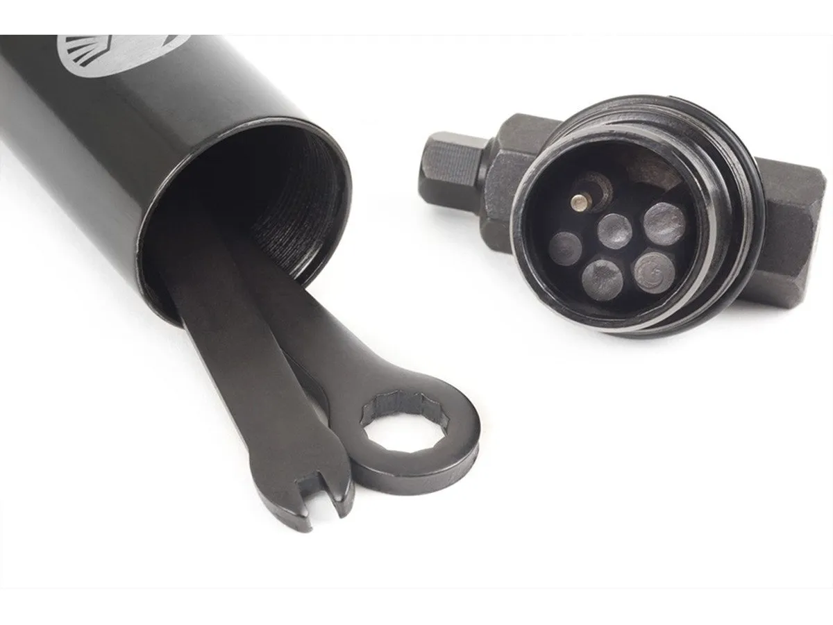 The The Shadow Conspiracy Multi Tool comes with every BMX relevant tool. The Shadow Conspiracy Multi Tool comes in a compact steel case which saves space.