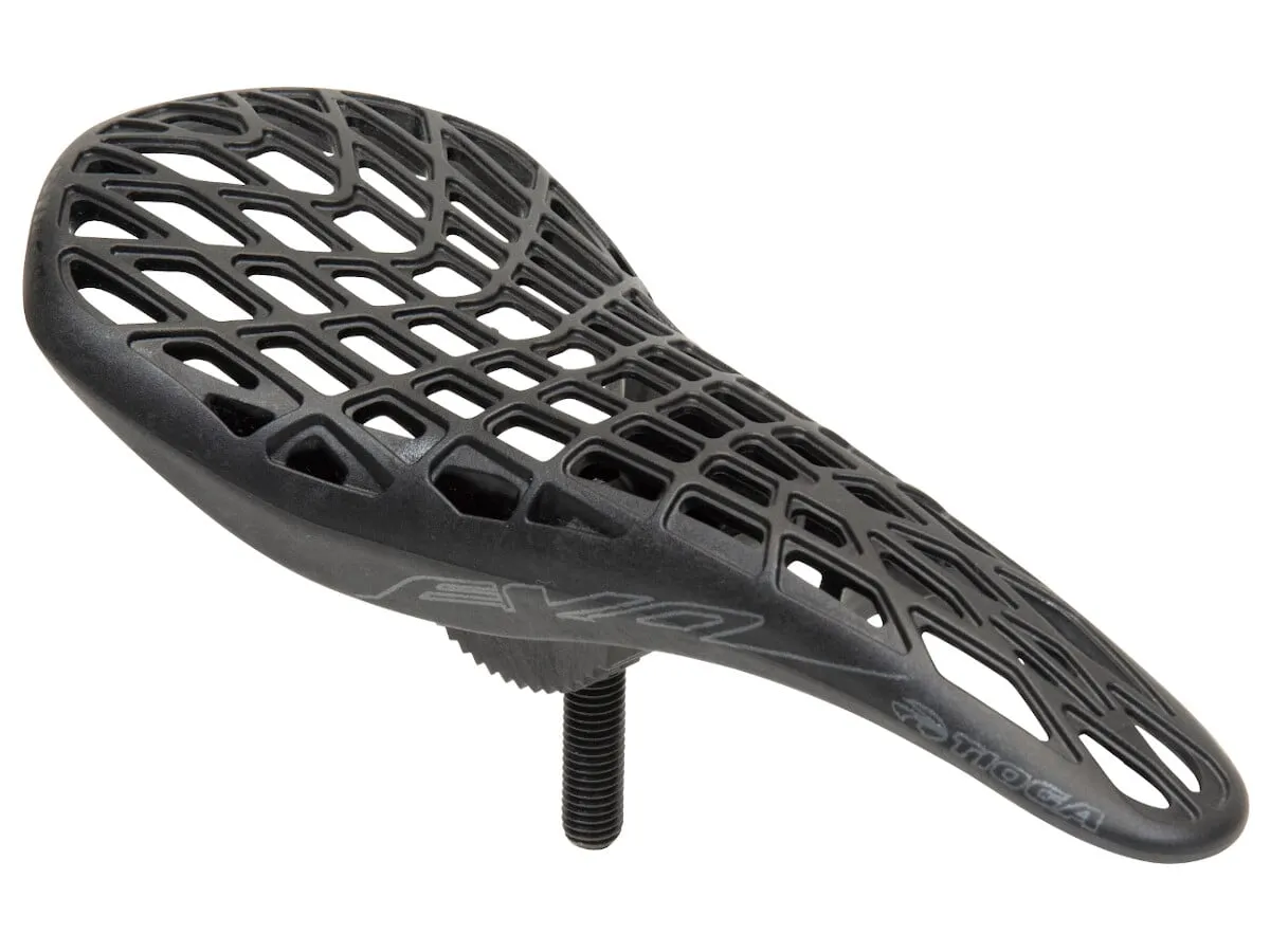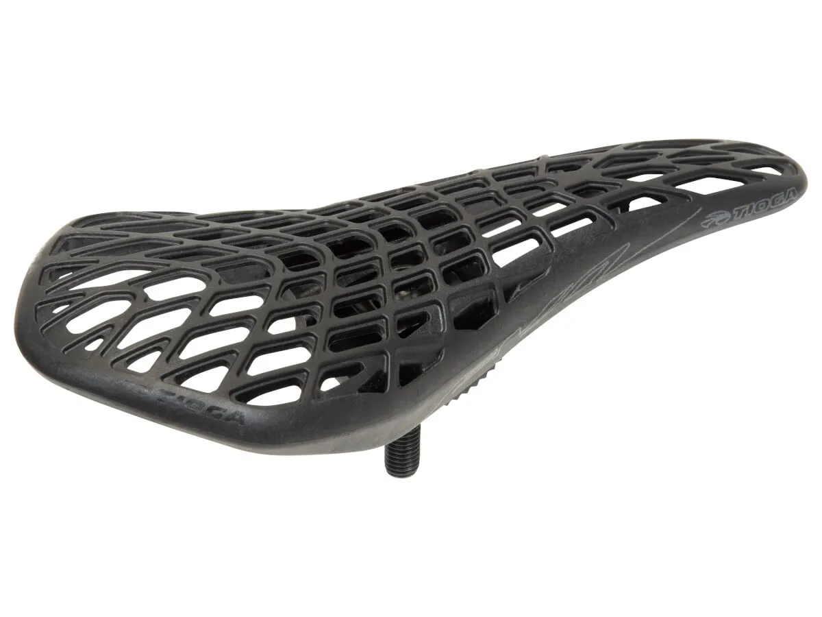 The Tioga "D-Spyder Evo" Pivotal Seat is sharing the same shape as the EVO (with integrated seatpost), the EVO Pivotal’s swooping contour lines perfectly matches the fluid lines of modern BMX racing frames. At 240mm in length and just 100mm wide, the EVO is uniquely sleek and slim to ensure zero disruption under any riding motion. Custom lightweight alloy pivotal hardware accessible with special allen wrench (included) for seamless look. For those with a dedicated warm-up/cool-down saddle, the EVO pivotal is the ultimate race time saddle.