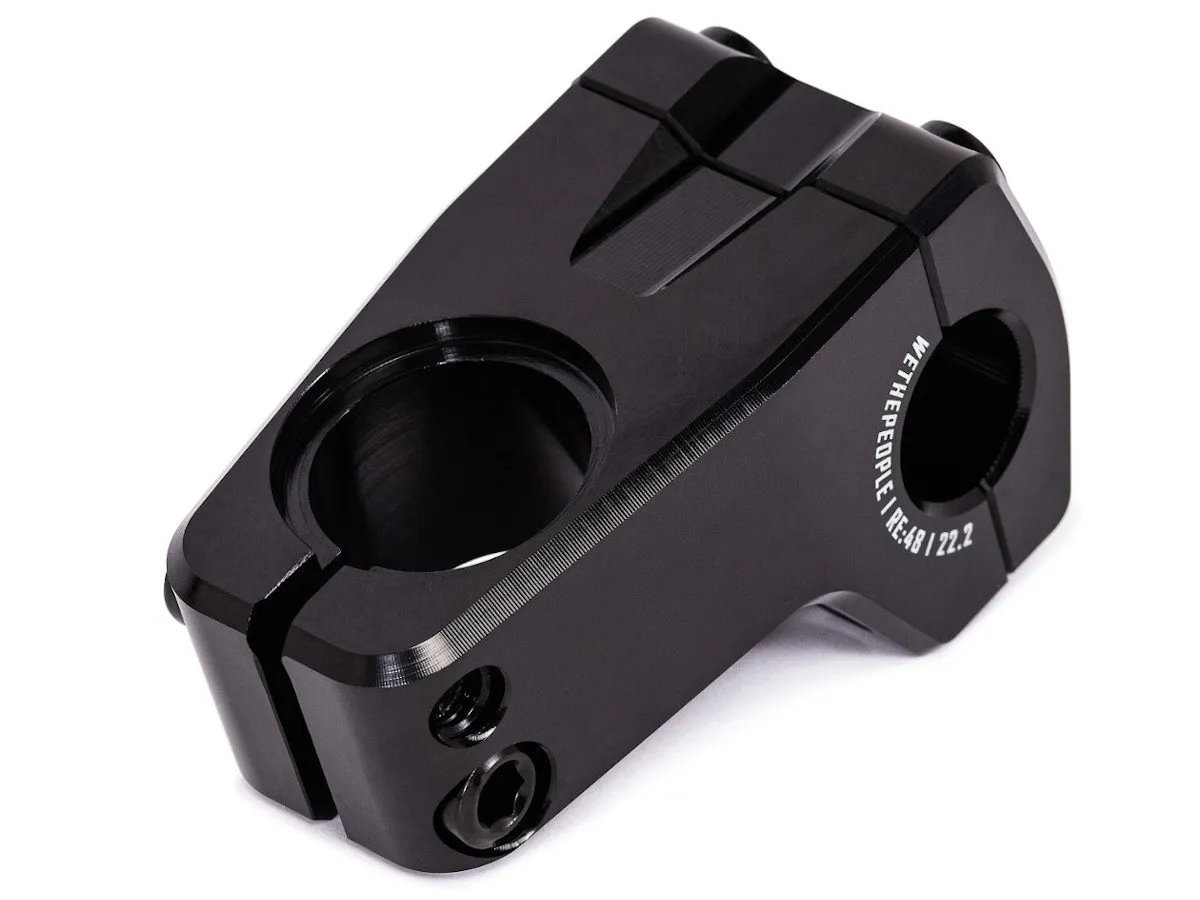 The wethepeople "Logic" Frontload Stem is a high qualitiy topload stem which is fully CNC-machined which makes it very solid. The wethepeople "Logic" Frontload Stem incorporates Wethepeoples patented Shark Tooth Clamping technology. The fine micro-knurling allows the stem to "bite" into the knurling on the handlebar clamping area, creating a stronger, slip free interface.